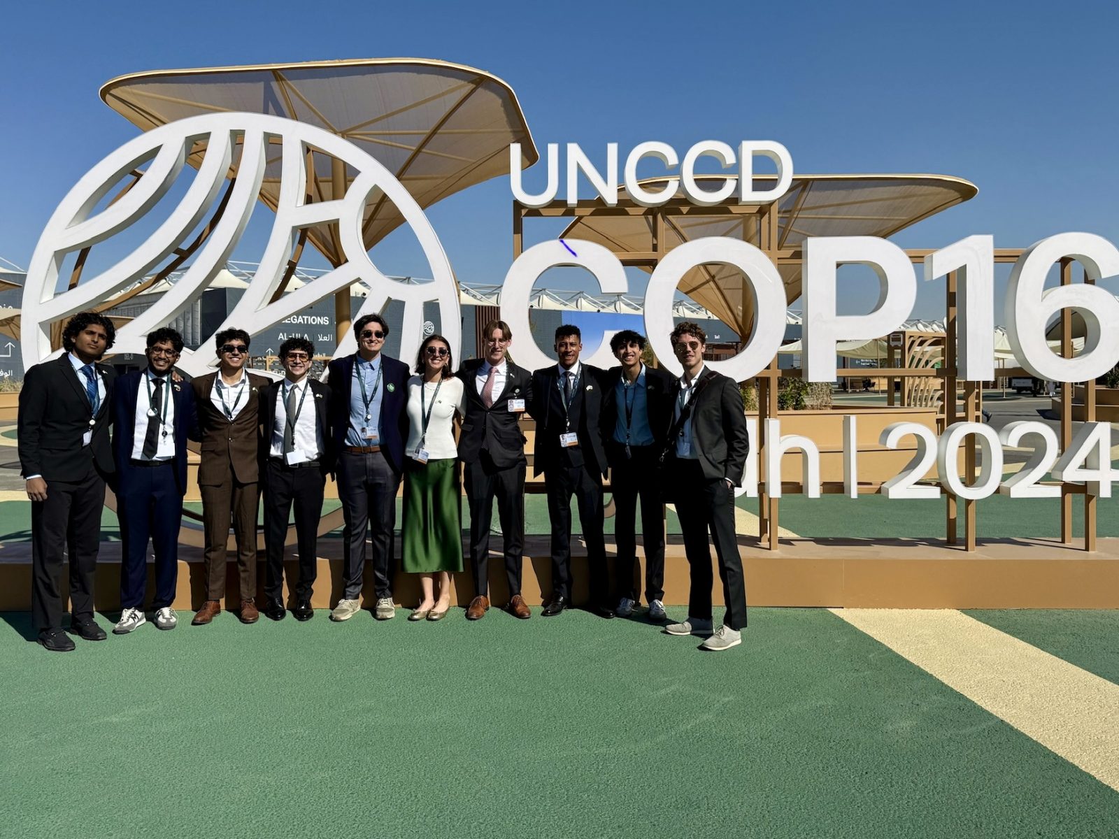 Vanderbilt students attending the COP16 Summit, left to right: Sai Mattapalli, Shaun Karakkattu, Ayaan Siddiqui, Theodore Perl, Deniz Orbay, Liv Lockwood, Benedict Ballman, William White IV, Armaan Parikh and Augustus Boettcher (Submitted photo)