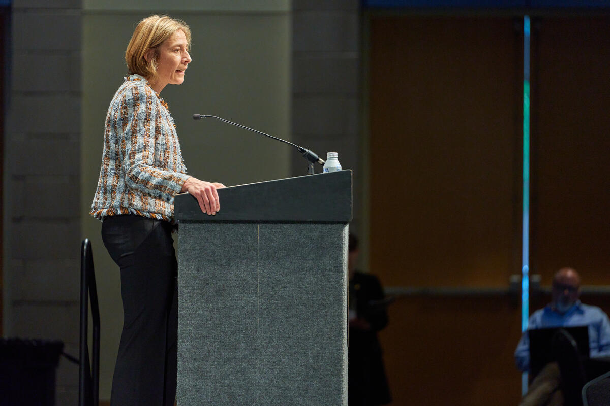 In her remarks, C. Cybele Raver, provost and vice chancellor for academic affairs, stressed the importance of collaboration to drive innovation, saying, “It’s easy to talk about the power of collaboration, but it’s important to walk the walk to actually yield impact, innovation, and output from those conversations.” Raver emphasized that radical collaboration across disciplines, fields and universities is necessary for profound societal transformation and impact through cutting-edge discovery.