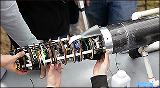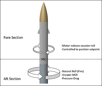 The Vanderbilt team has designed a novel two-part rocket with sectional roll control (SRC) that enables the forward payload section to steadily image ground targets while the bottom section compensates for the rocket’s natural roll.