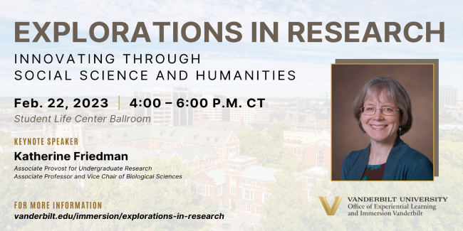 For more information on Explorations in Research, please email the Office of Experiential Learning and Immersion Vanderbilt at experiential.learning@vanderbilt.edu