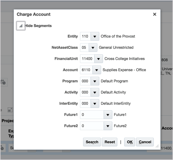 3. Once the POET and COA strings have been updated, the expense can be itemized.