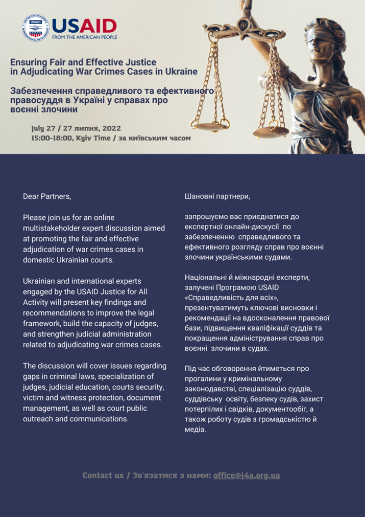 Mike Newton presents USAID report on adjudicating war crimes cases in Ukraine July 22
