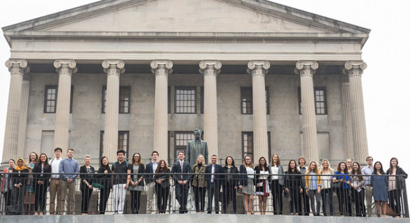 When Tara McKay and Gilbert Gonzales designed their University Course, The Nation’s Health: From Policy to Practice, they knew a trip to the Tennessee state legislature would be a key component of the curriculum. That vision became a reality on Feb. 22, when the two took their students to the Tennessee State Capitol in downtown Nashville for an immersive “day on the hill” experience.
