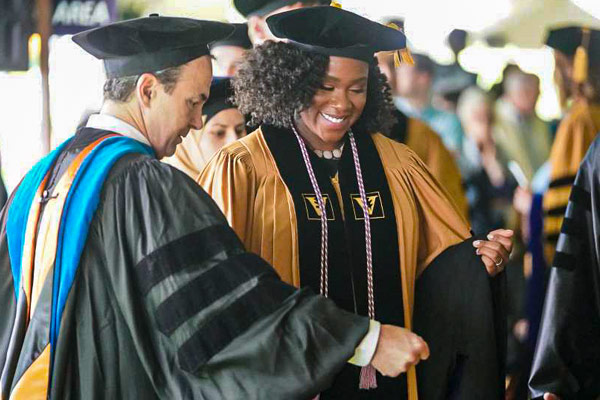 Founder’s Medalist for the School of Nursing was DNP graduate Brooke M. Faught. A successful entrepreneur who worked 60+ hours a week while enrolled at VUSN, Faught directs the Women’s Institute for Sexual Health, a Brentwood, Tennessee, practice focusing on female sexual health care. Faught is also the mother of three daughters, one with special needs.