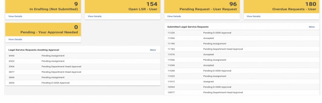 The new system sends requestors email notices as a request for legal services moves through the approval process and eventually gets assigned to an OLA attorney. Moreover, each requestor has a personal homepage where she or he has tools that show the stages of the legal service request process for the requests she or he has made.