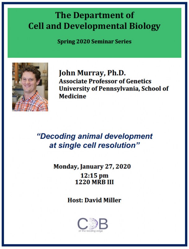 Cell and Developmental Biology lecture on "Decoding animal development at single cell resolution" is Jan. 27