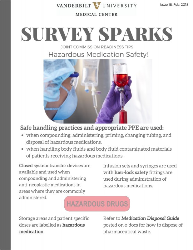 As part of the communication plan to engage and prepare staff for VUMC's upcoming Joint Commission survey, the newsletter "Survey Sparks" will be distributed throughout the organization on a twice-weekly basis.