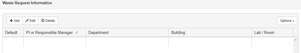 3. Under the Waste Request Information section, this is the list of PIs that you want to request waste collection requests for.