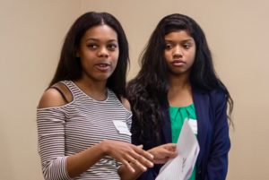 Sophomores Sasha Whitley (left) and Cara London (right) present their research, “What is Black Vandy: Minority Communities at Vanderbilt and Beyond.”
