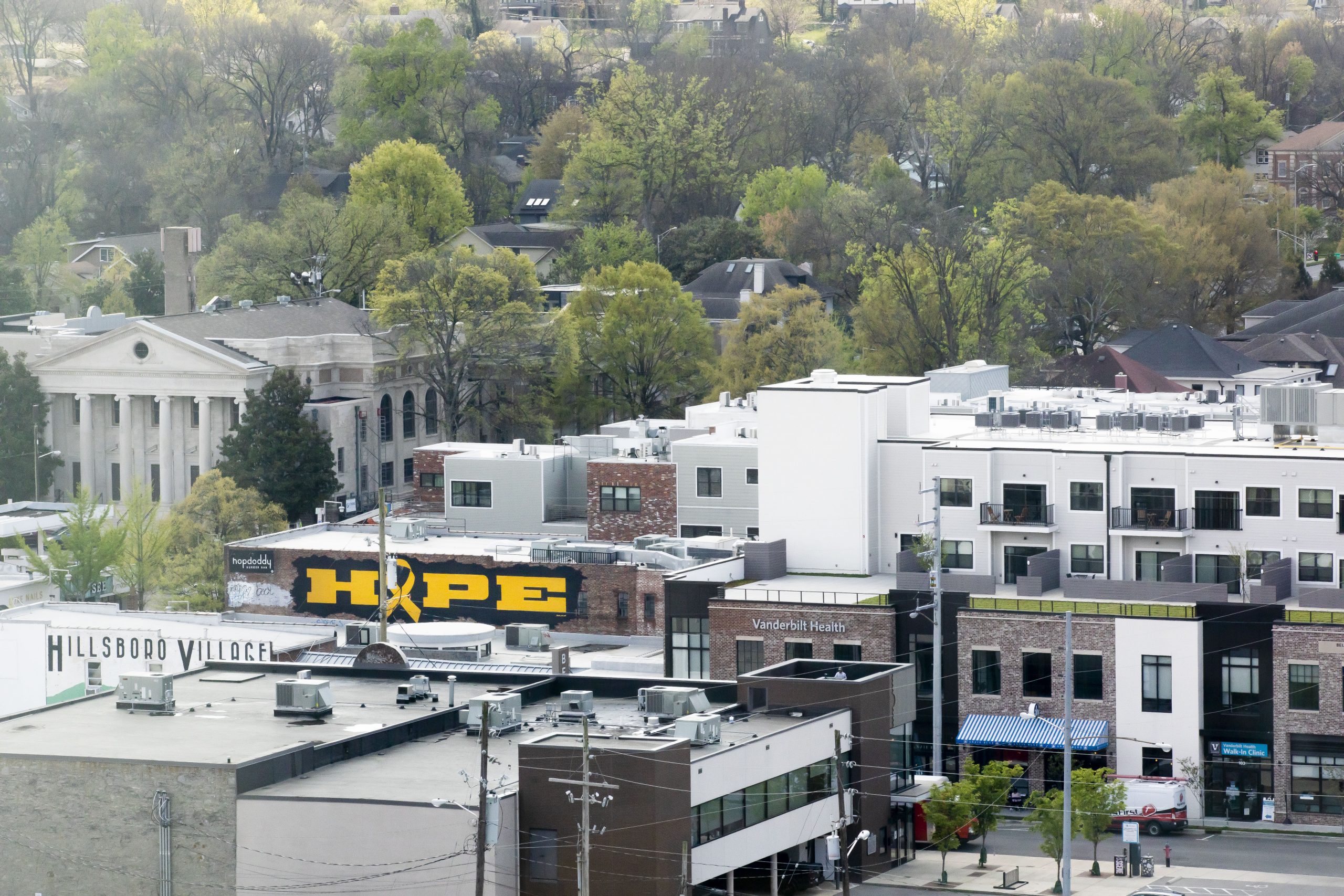 The word “Hope” is clearly emblazoned in bright yellow paint on the side of a brick building just off 21st Avenue South in Hillsboro Village. In place of the “O” is a yellow ribbon – symbolizing childhood cancer awareness.