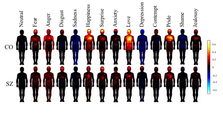 The study also found that individuals with schizophrenia don’t differentiate on their body maps for varying emotions. That may pose a problem for them in identifying, recognizing and verbalizing their emotions or trying to understand the emotions of others.