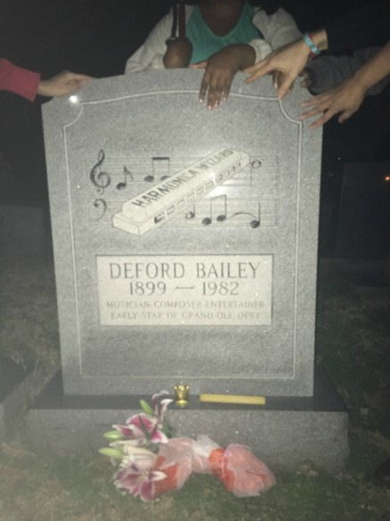 Students were treated to a field trip in a black stretch limousine for the last class to visit the grave of DeFord Bailey, a highly influential African American harmonica player who performed regularly on the Grand Ole Opry during the 1920s and ’30s. Bailey is buried in the Nashville’s historic Greenwood Cemetery.