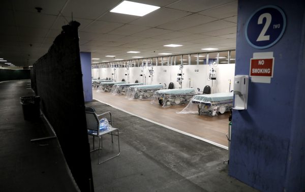 Hospital beds set up for potential COVID-19 patients are seen in the E Pod, a dedicated unit set up by the Emergency Department. The E Pod, a climate controlled area located in the Medical Center East parking garage across the street from Vanderbilt University Adult Hospital, was created as a proactive movement by VUMC to handle a potential surge in COVID-19 patients. Photo by Erin O. Smith