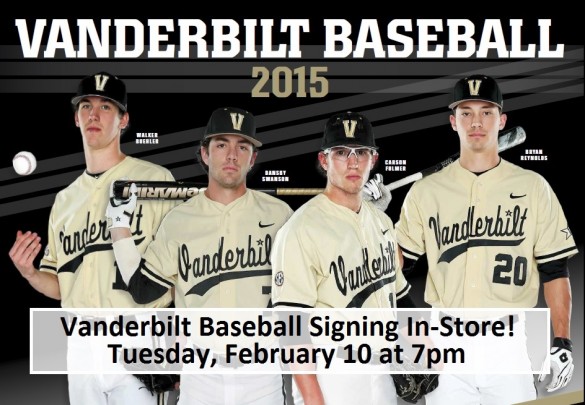 Meet Vanderbilt’s head baseball coach, Tim Corbin, and several members of his National Champion team on Tuesday, Feb. 10, at 7 p.m. at Barnes and Noble at Vanderbilt.