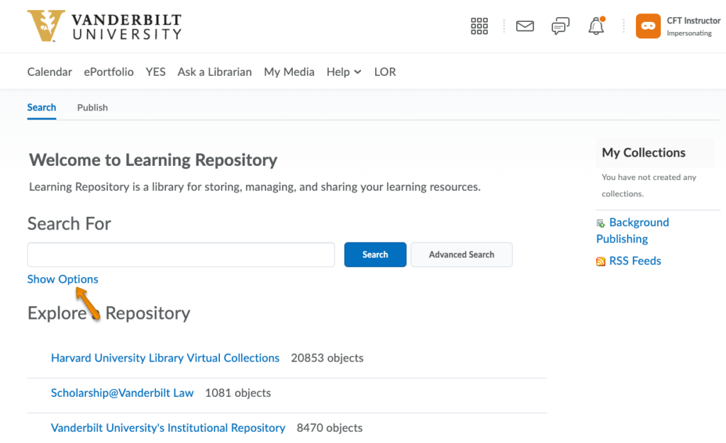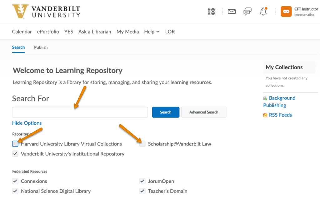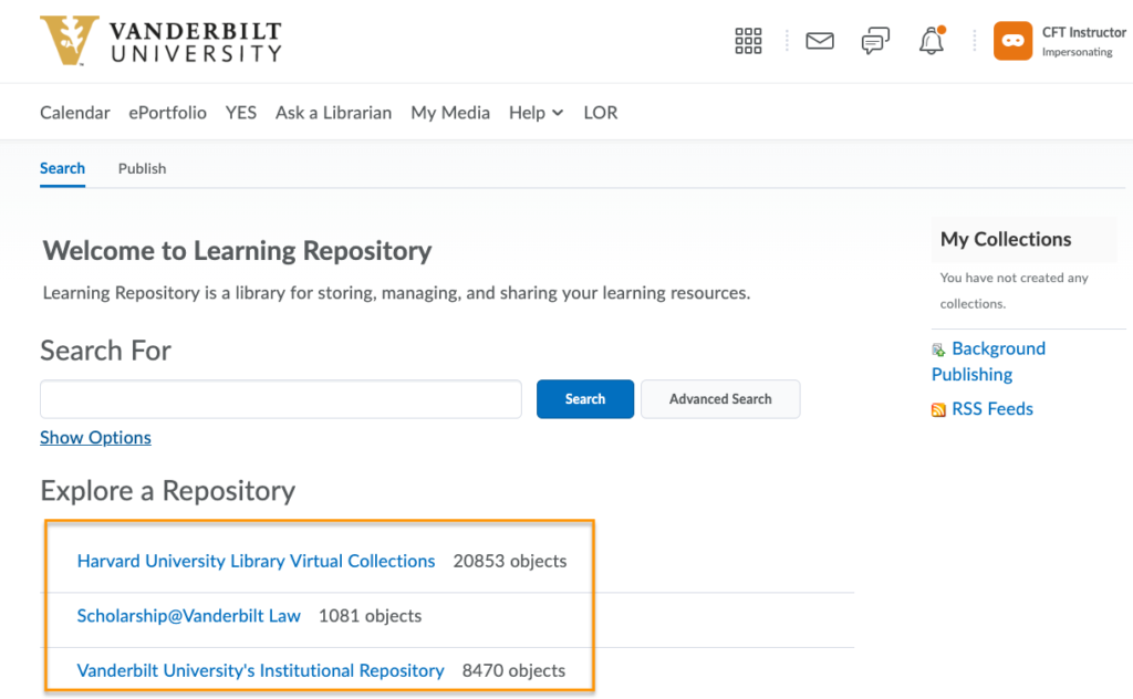 5. To look through available material in a particular repository, click on one in the Explore a Repository area.