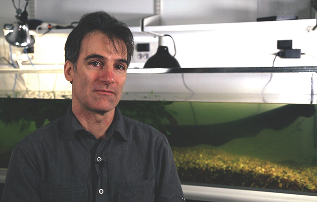 Ken Catania with four-foot electric eel named Ernie. (Zachary Eagles / Vanderbilt)