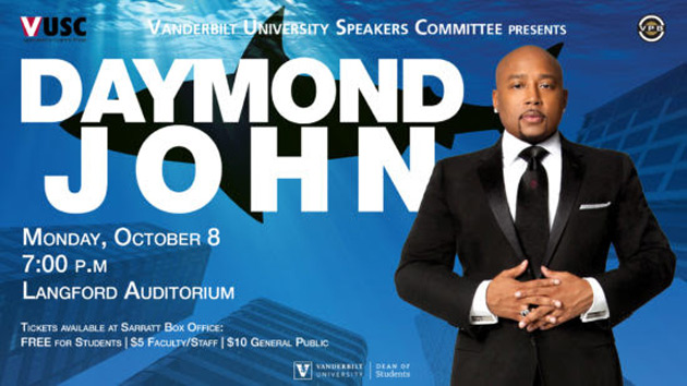 “An Evening with Daymond John” is scheduled for Monday, Oct. 8, from 7 to 8 p.m. in Langford Auditorium.