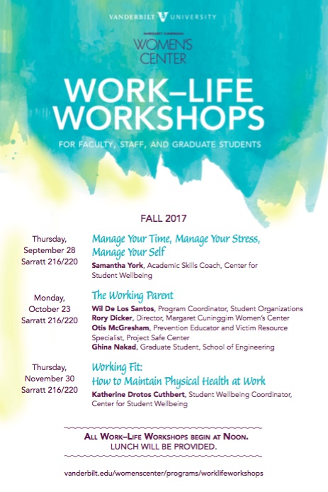 The workshop will be from noon to 1 p.m. in Sarratt 216/220. Lunch will be provided. Contact womenctr@vanderbilt.edu with any dietary restrictions.