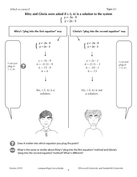 When it comes to following mathematical procedures, students often memorize the steps without comprehending the mathematical principles that underlie each one. Asking students to compare and discuss multiple methods for solving the same problem encourages higher order thinking and requires students to demonstrate a deeper understanding of the concepts. According to the research team, comparison is a natural way in which humans learn, noting that, for example, people often compare products to decide which one to buy. Through curricular tools and professional learning opportunities, the researchers supported educators in incorporating this natural thinking process into algebra classrooms.