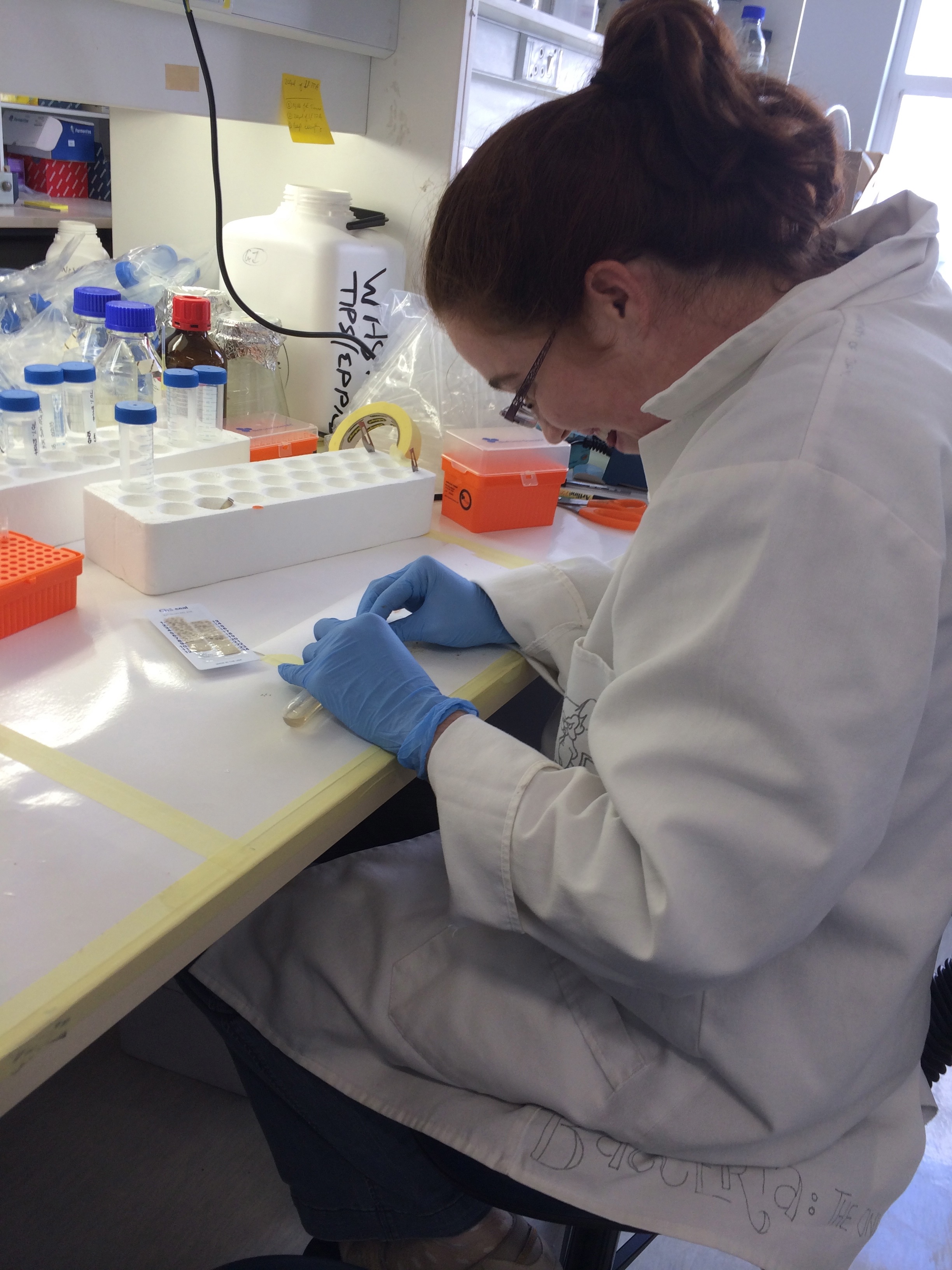 For the past 5 years, our lab, in collaboration with Dr. Rick Haselton's lab in Biomedical Engineering have been developing platform extraction devices for simplifying sample processing. Funded by the Bill and Melinda Gates foundation, we have worked hard to develop extraction devices for purifying proteins and nucleic acids from biological samples. A collaboration between us and Dr. Johnathan Blackburn's lab at the University of Cape Town arose out of attending meetings in Seattle with other Gates funded researchers. Keersten Davis and Hali Bordelon (from the Haselton Lab) flew to Cape Town to test our automated extraction device on a host of frozen TB patient urine samples they had stored in the lab. The goal was to determine whether a specific nucleic acid fragment of the TB virus could be detected in urine.