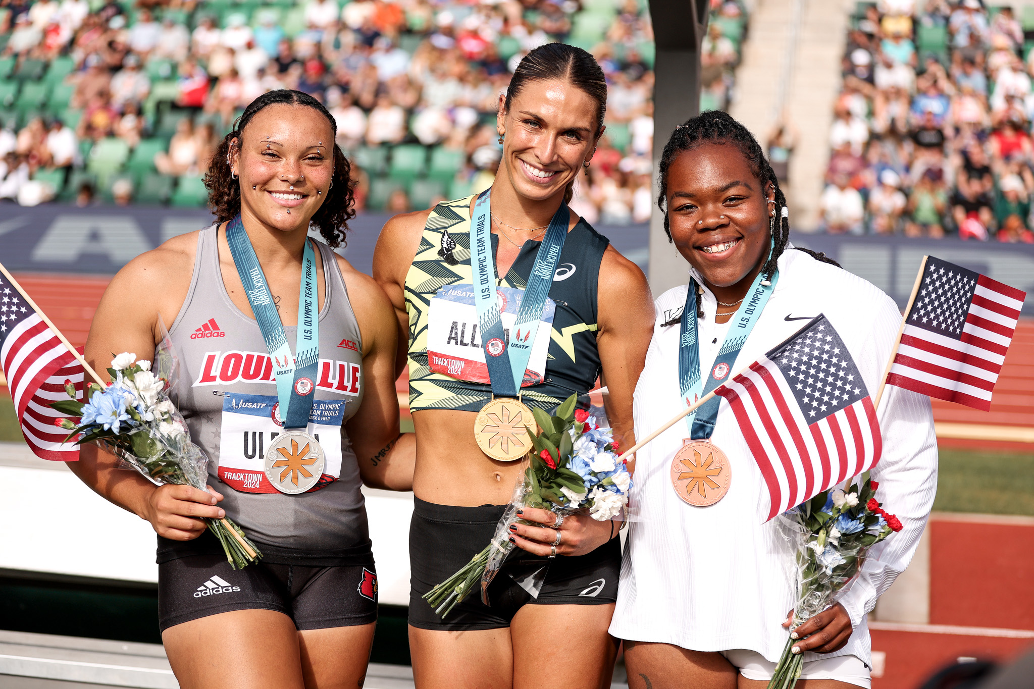 The Raleigh, North Carolina, native moved into second place in the finals in the third round when she recorded her best mark of the night with a 62.54 meter throw, as she would go on the finish third among the 12 competitors who advanced out of the first round Monday. Four of her six throws in the finals surpassed the 60-meter mark.
