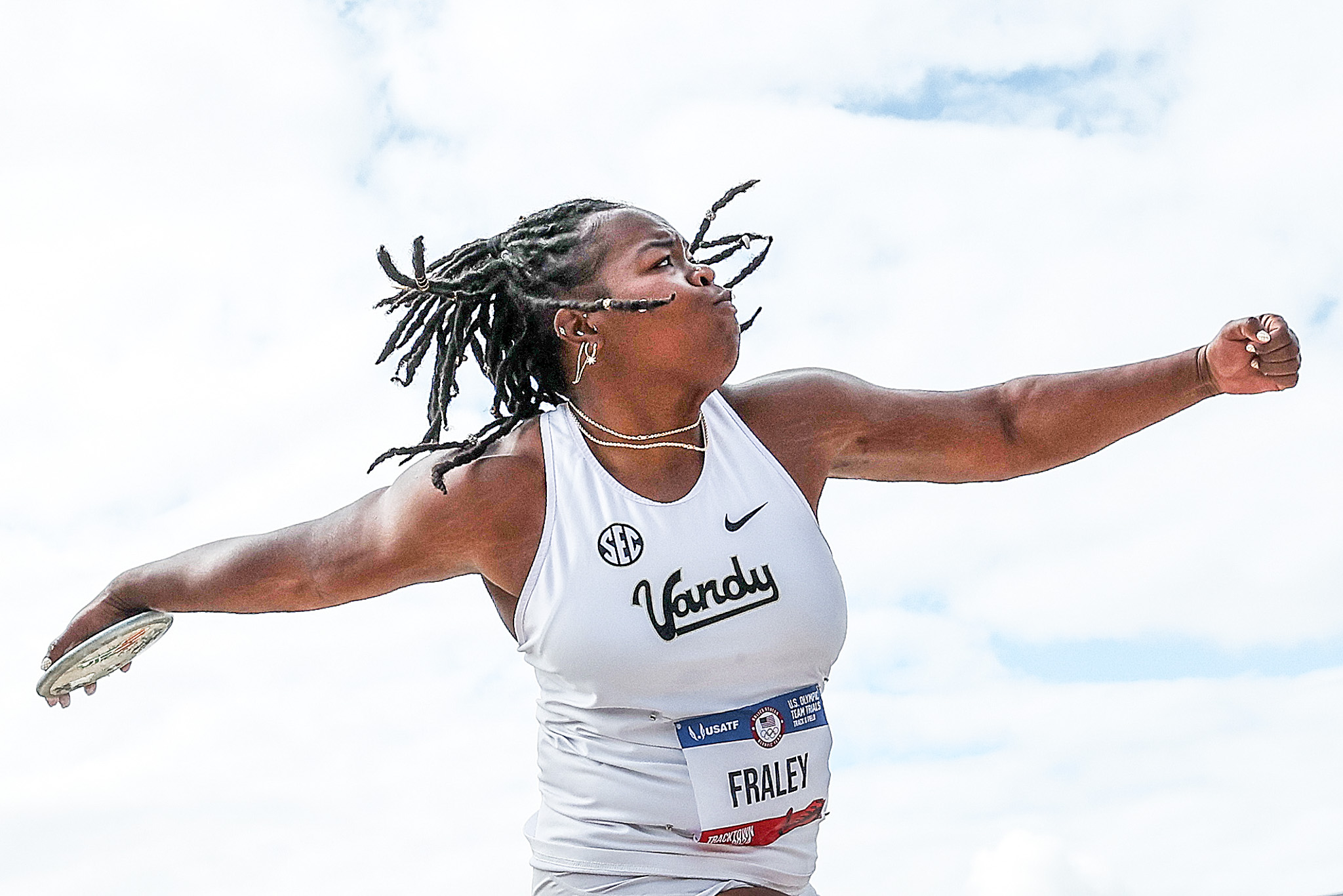 On Monday, Fraley competed in the qualifying round of the discus where she placed third overall to advance to Thursday’s final. Her top throw landed at the 62.85-meter mark.