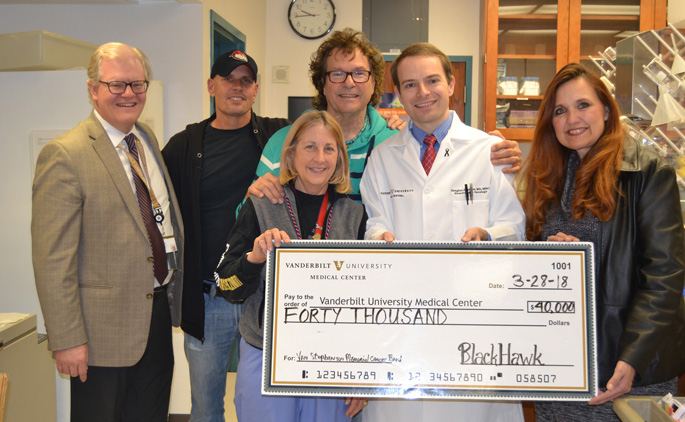 Henry Paul and Dave Robbins, members of country music group BlackHawk, as well as southern rock band The Outlaws, recently donated $40,000 to Vanderbilt-Ingram Cancer Center (VICC) in support of melanoma research. Since 2006, the band members have generated more than $100,000 for VICC.