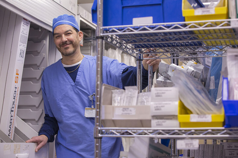 As a lead supply technician for VUMC, Jones knows the work his 15-member team performs daily is vital to support doctors and nurses capabilities to carry out procedures. His team is responsible for receiving and supply for the cardiology catheterization and electrophysiology (EP) labs, and also services gastroenterology, radiology and Monroe Carell Jr. Children’s Hospital at Vanderbilt.