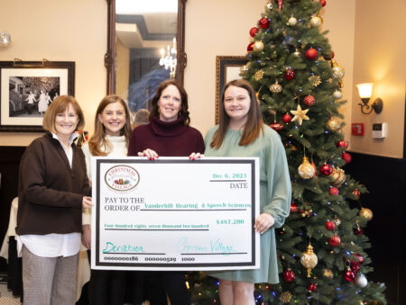 Event organizers, Vanderbilt Bill Wilkerson Center staff and special guests gathered recently to celebrate the success of this year’s Christmas Village. Christmas Village is one of the oldest charitable events in Nashville and is organized by volunteers from the Nashville Pi Beta Phi Alumnae Club. This year’s event raised $487,200. The proceeds support special hearing and speech programs at the Vanderbilt Bill Wilkerson Center and patients recovering from traumatic brain injury at the Vanderbilt Pi Beta Phi Rehabilitation Institute. Next year’s 63rd annual Christmas Village will be held November 15-17, 2024, at The Fairgrounds Nashville.