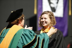 Even so, nearly 100 returned for the graduation and investiture of the academic hood ceremonies, including Morgan De Kleine, MSN, a graduate of the dual Nurse-Midwifery/Family Nurse Practitioner program, who was the 2015 School of Nursing Founder’s Medalist.