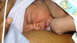 Studies show skin-to-skin bonding in the first hour after birth between mother and child and father and child can increase the chance for successful breastfeeding.