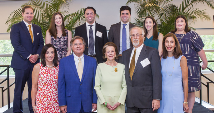 The Eskind family gathers with Vanderbilt officials to celebrate the signing of the $6 million gift to the Eskind Biomedical Library. From left are Vice Chancellor for Development and Alumni Relations Susie Stalcup, Donna Eskind, Dr. Jeffrey Eskind, Annette Eskind, Dean of the School of Medicine and President and CEO of VUMC Dr. Jeff Balser, Dr. Steven Eskind and Laurie Eskind. (Photo by Anne Rayner)