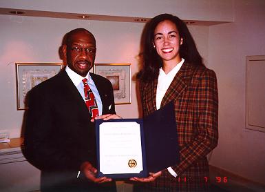 Veronica Lawson Gunn, a fourth-year Vanderbilt University School of Medicine student, recently received the prestigious William and Charlotte Cadbury Award at a ceremony in San Francisco. The award recognizes outstanding academic achievement, leadership and community service. Presenting the award was Leon Johnson, president of National Medical Fellowships, Inc.