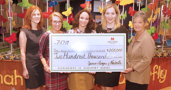 The Junior League of Nashville recently presented a gift of $200,000 to support the Child Life Program at Monroe Carell Jr. Children’s Hospital at Vanderbilt.