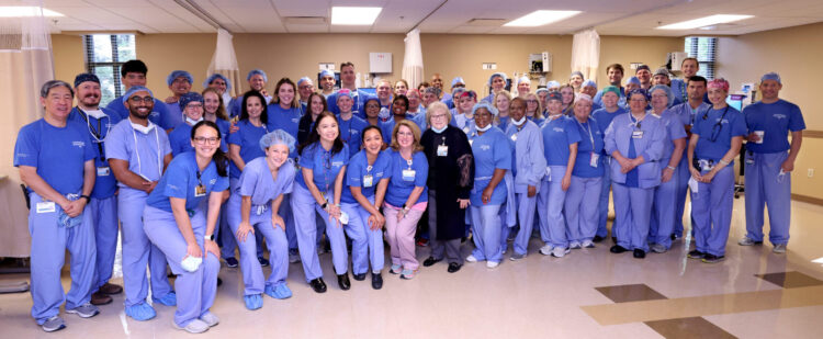 Dylan Makor receives care from Hong Vo, RN. She and more than 30 colleagues volunteered Saturday, Aug. 11, so uninsured people could have access to hand surgeries during Vanderbilt Orthopaedic Outreach Day, an event that is part of the Touching Hands Project, an initiative of the American Society for Hand Surgery.