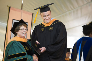 Marilyn Dubree, MSN, R.N., Executive Chief Nursing Officer of Vanderbilt University Medical Center and herself an alumna of VUSN, welcomed the graduates and guests before providing background on the investiture of the academic hood.