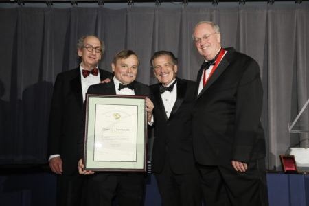 (left to right) Joel Sheinfeld, MD, Roger Dmochowski, MD, with award, Harris Nagler, MD, and Robert Flanigan, MD. Photo courtesy of the American Urological Association.