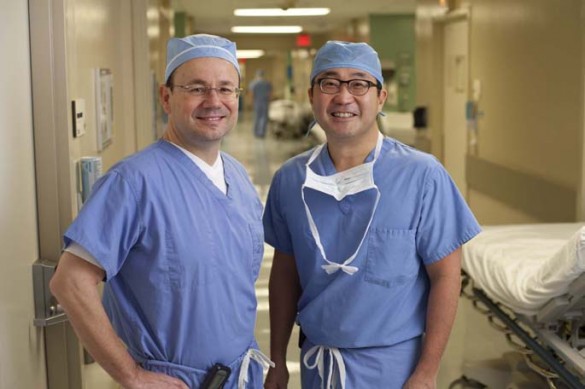 Sam Chang, M.D., and Michael Cookson, M.D., both professors of Urologic Surgery, participated in the pivotal clinical research trials for Cysview — an imaging agent that attaches to tumor cells and fluoresces a bright pink color when used with a special camera and lighting system. The new technology has been shown to enhance detection and treatment of bladder cancer.