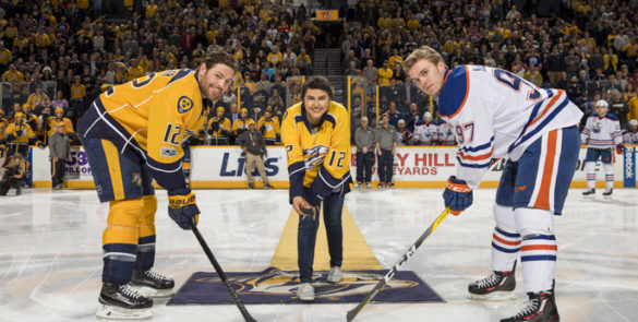 The Nashville Predators host two Hockey Fights Cancer games each season to raise support for the 365 Pediatric Cancer Fund Presented by Twice Daily. At these games, Monroe Carell ambassadors are invited to the game not only to take part in a luxury suite experience but also to participate in special in-game activities like the puck drop, riding the Zamboni and more.