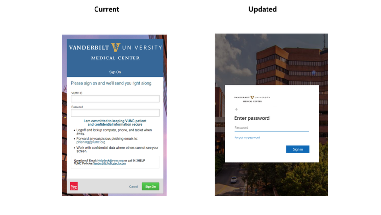 When visiting the sign-in page for the VUMC Software Store, users will see an updated sign-in experience: