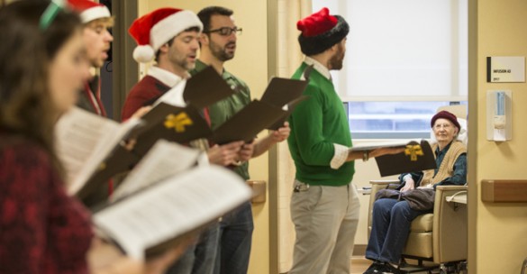 Every holiday season, members of the Vanderbilt Community Chorus sing holiday-themed carols to Vanderbilt-Ingram Cancer Center patients, family members and visitors.
