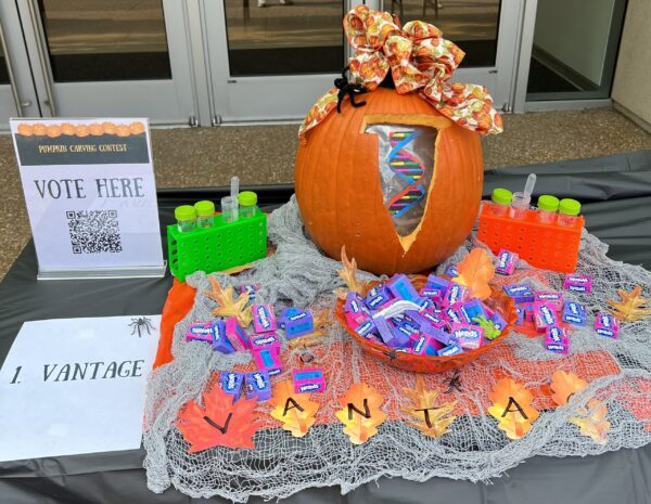 A large group of Nerds was key to Vanderbilt Technologies for Advanced Genomics (VANTAGE)’s entry, which inherited an Honorable Mention for its pumpkin sporting a DNA double helix.
