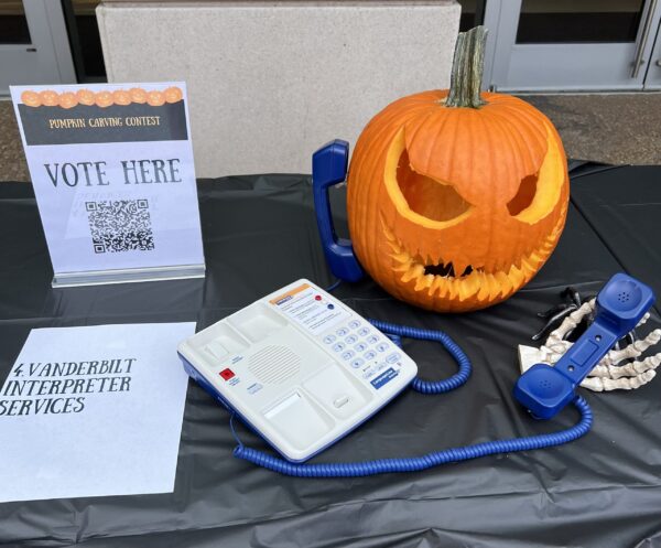 A jack-o-lantern that is scary in any language allowed Vanderbilt Interpreter Services to put down the phone and use its bony fingers to grip the prize for Best Carved.
