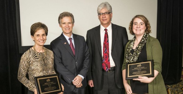 Vanderbilt’s Cystic Fibrosis Diagnosis and Treatment Center was recently granted continued accreditation and was awarded the Quality Care Award by the Cystic Fibrosis Foundation. At the award presentation are, from left, VUMC’s Bonnie Slovis, M.D., Bruce Marshall, M.D., vice president for Clinical Affairs for the Cystic Fibrosis Foundation, Jordan Dunditz, M.D., chair of the Cystic Fibrosis Foundation Center Committee, and VUMC’s Rebekah Brown, M.D.