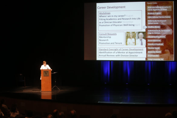 Nancy Brown, MD, Hugh J. Morgan Professor and chair of the Department of Medicine in the Vanderbilt University School of Medicine, delivered a mixture of accolades and challenges to the dozens of faculty members, residents and fellows who attended her annual State of the Department address last week in Langford Auditorium.