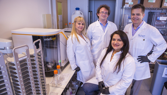 His lab has developed high-efficiency methods that can quickly isolate antibody-producing white blood cells from survivor blood samples. By fusing the white blood cells to fast-growing myeloma (cancer) cells, the researchers can produce large quantities of “monoclonal” antibodies that target specific viruses.