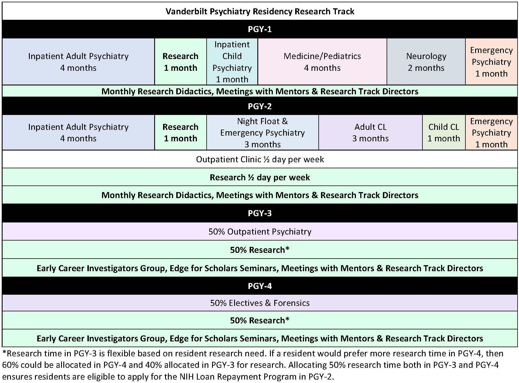 *Research time in PGY-3 is flexible based on resident research need. If a resident would prefer more research time in PGY-4, then 60% could be allocated in PGY-4 and 40% allocated in PGY-3 for research.