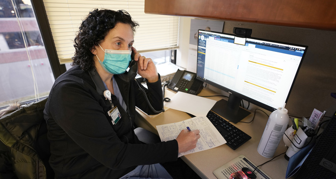 Melissa Kaufman, MD, is among the physicians who have volunteered to serve as a liaison between care teams and families of COVID-19 patients. (photo by Donn Jones)
