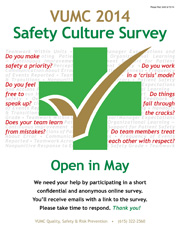 In May, Vanderbilt University Medical Center will launch a survey of clinical staff and faculty to assess attitudes and perceptions regarding patient safety at the Medical Center.