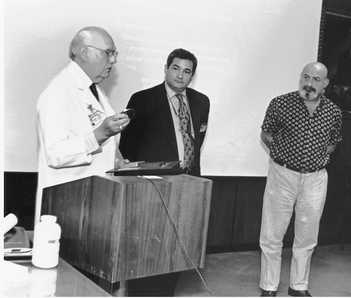 A team of health care officials from Argentina stopped by VUMC recently as part of a tour of U.S. hospitals. With Dean John Chapman (left) are Dr. Jorge Daniel Lemus (center), subsecretary of Medical Attention and Secretary of Resources and Health Programs, and Dr. Moises Modat, from the Ministry of Health of the Province of Buenos Aires.